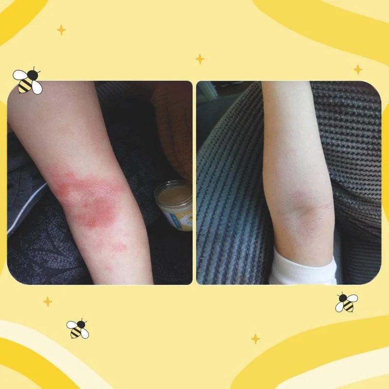 Beeswax and honey form a semi-occlusive barrier protecting skin from external irritants, locking in moisture and helping to soothe the itch.